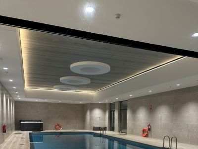 El complejo ofrece una zona ajardinada con una gran piscina exterior desbordante para adultos, piscina infantil piscina, piscina cubierta climatizada, gimnasio, sauna finlandesa, zona de coworking, bonito jardín verde con césped y fuentes, zona de relax con tumbonas, pista de pádel y aparcamiento cubierto.