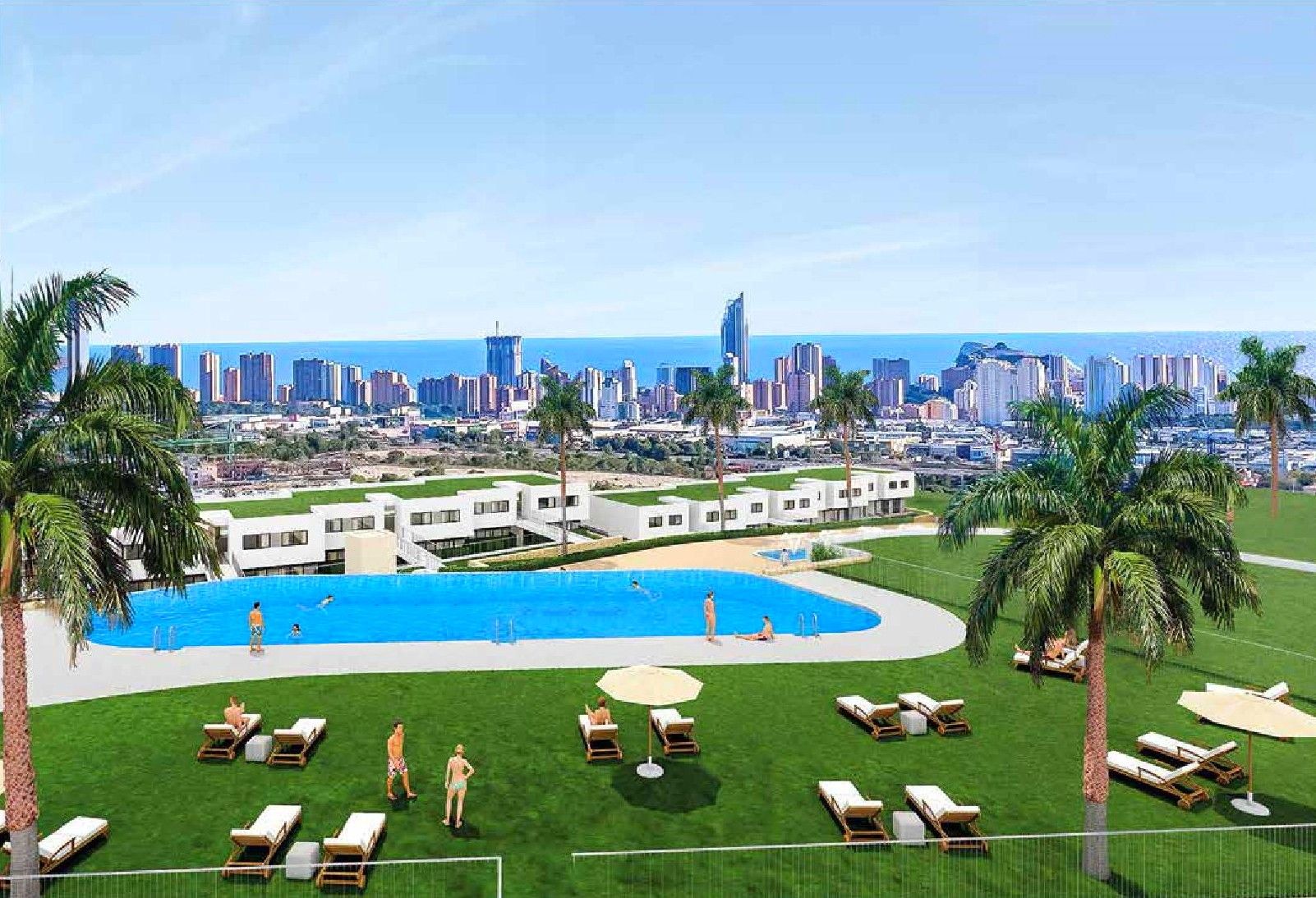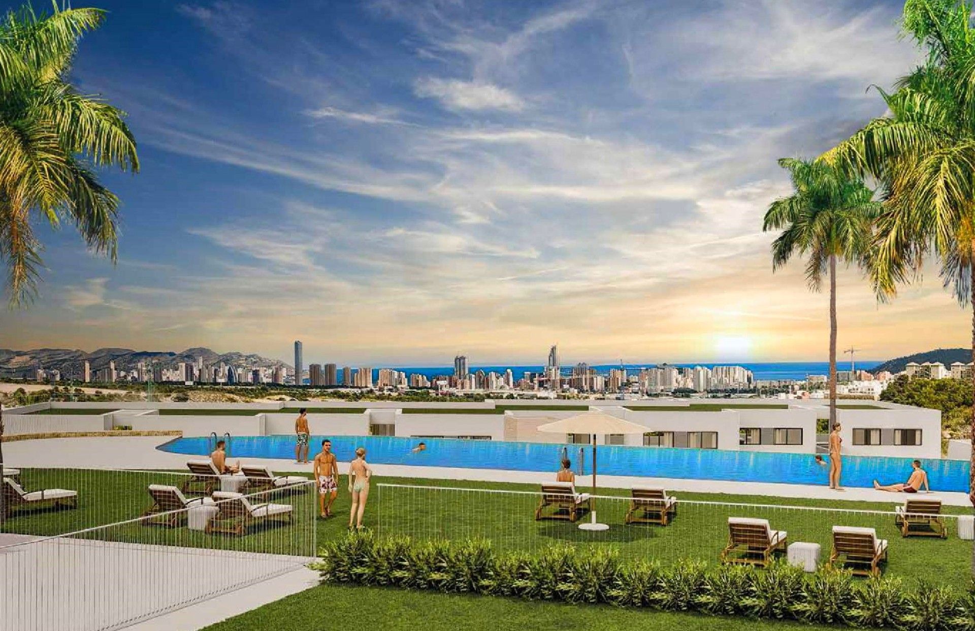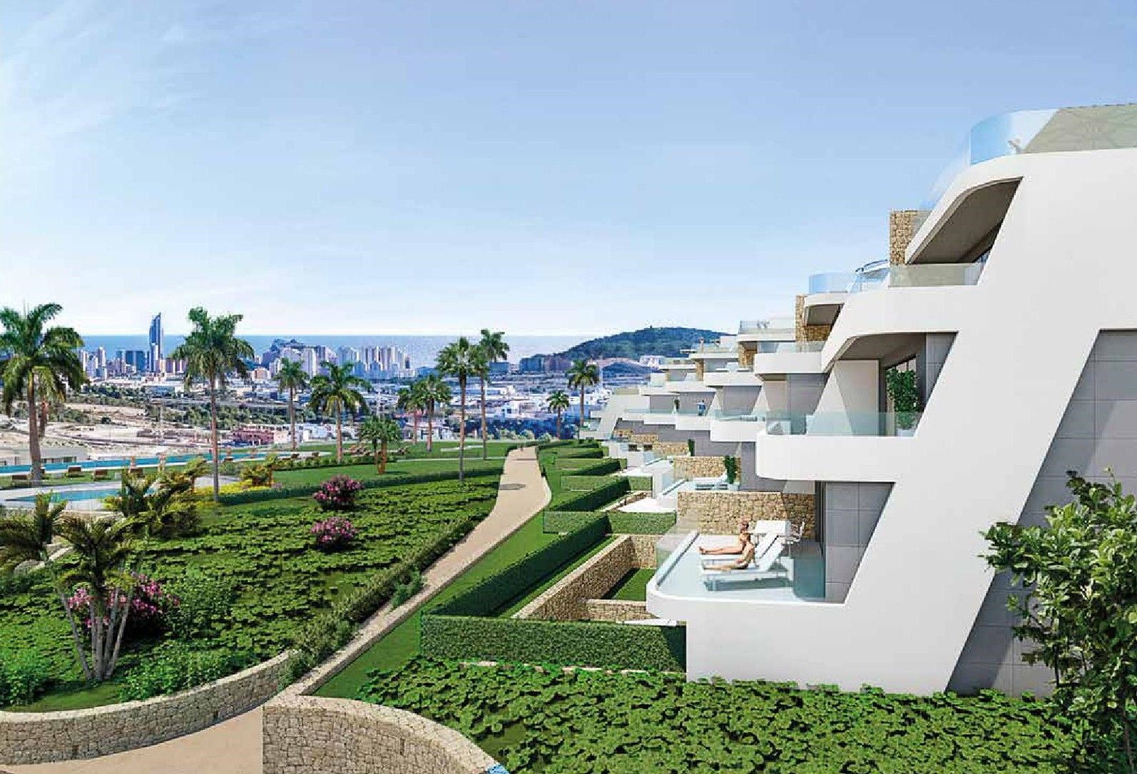 Un nuevo conjunto residencial integrado armónicamente en el paisaje natural con una magnífica vista al Mar Mediterráneo y Benidorm.