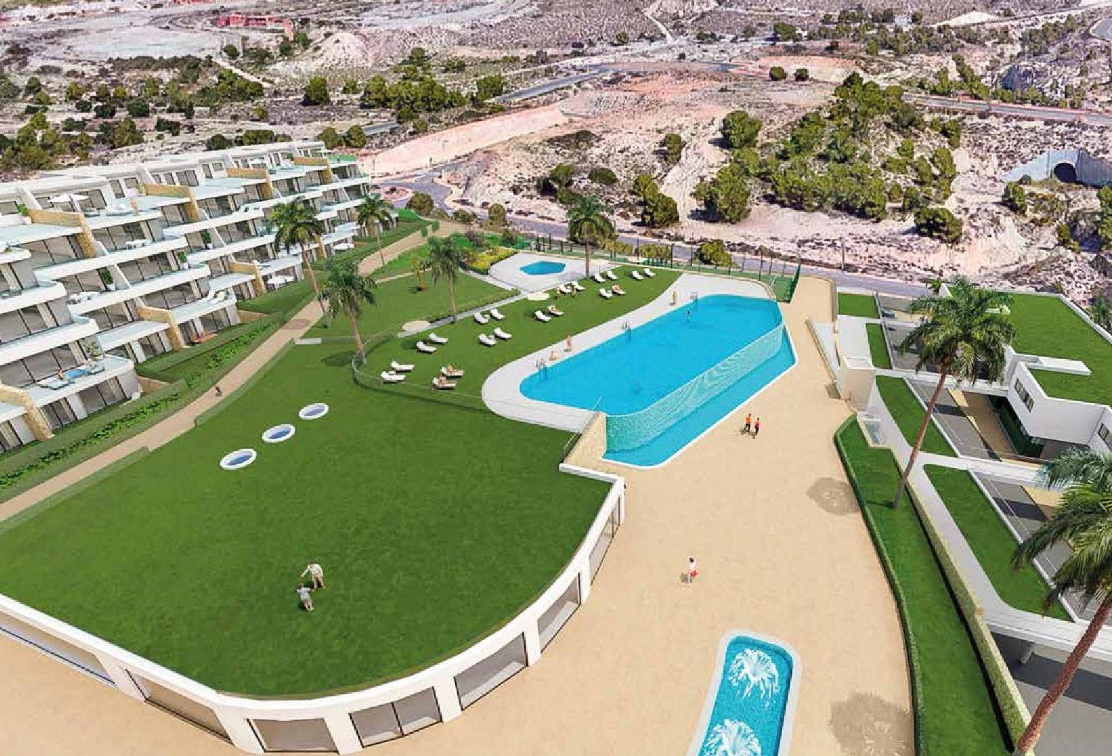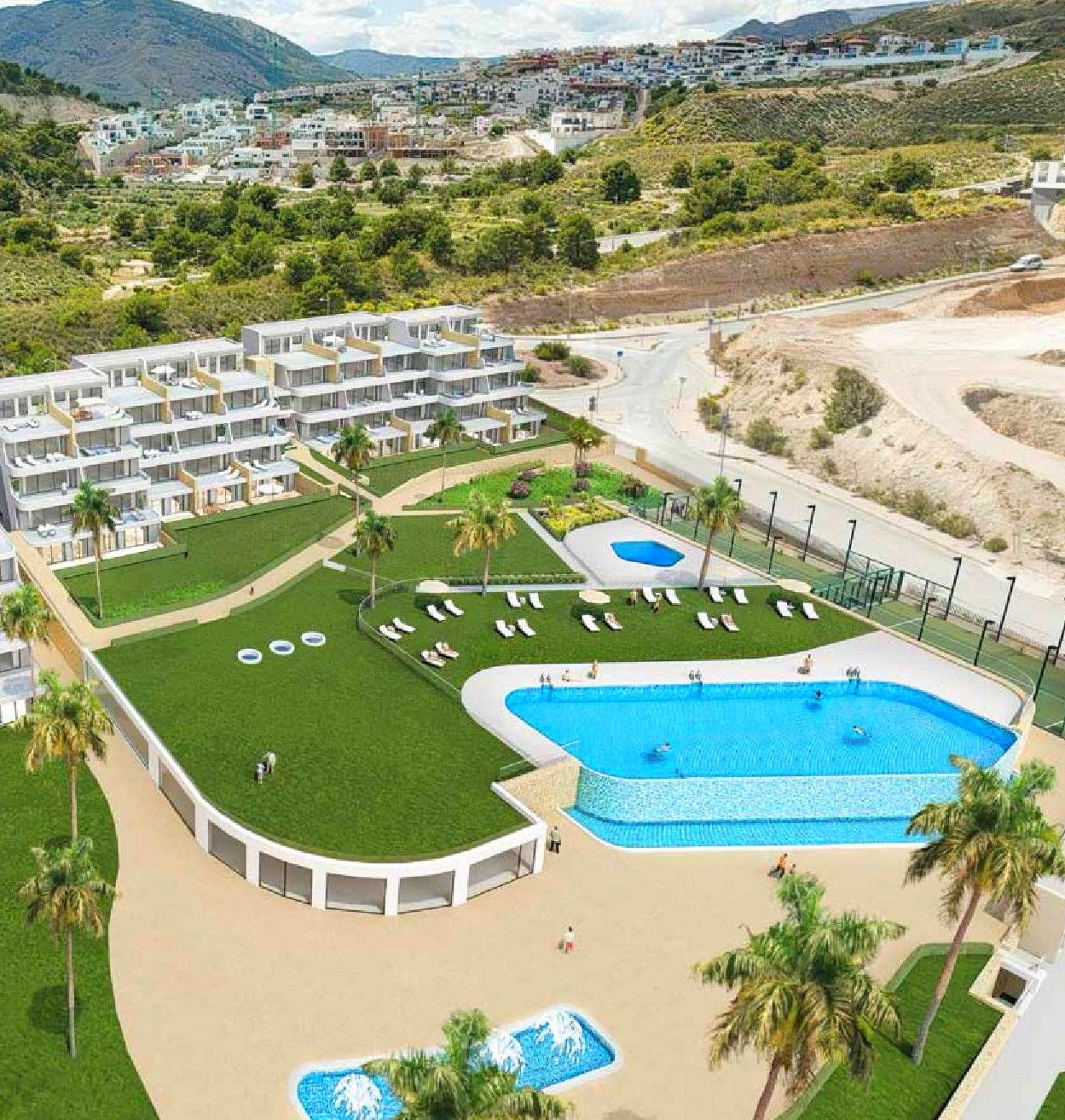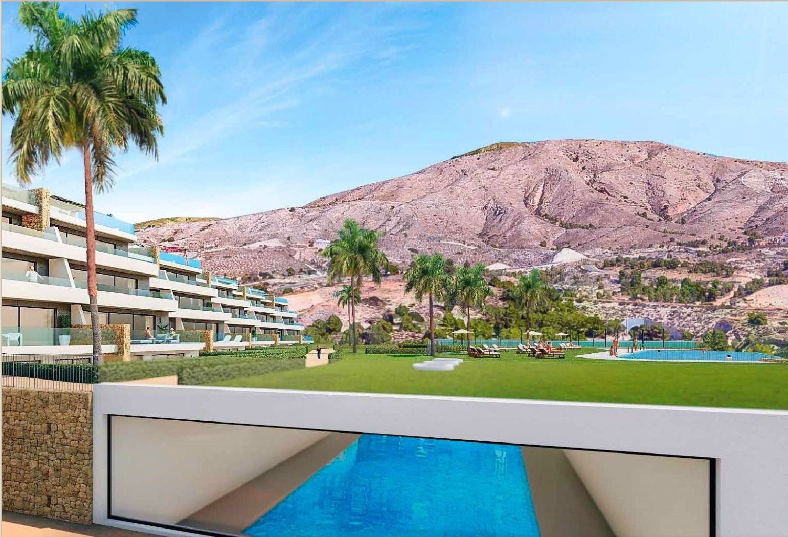 Un nuevo conjunto residencial integrado armónicamente en el paisaje natural con una magnífica vista al Mar Mediterráneo y Benidorm.