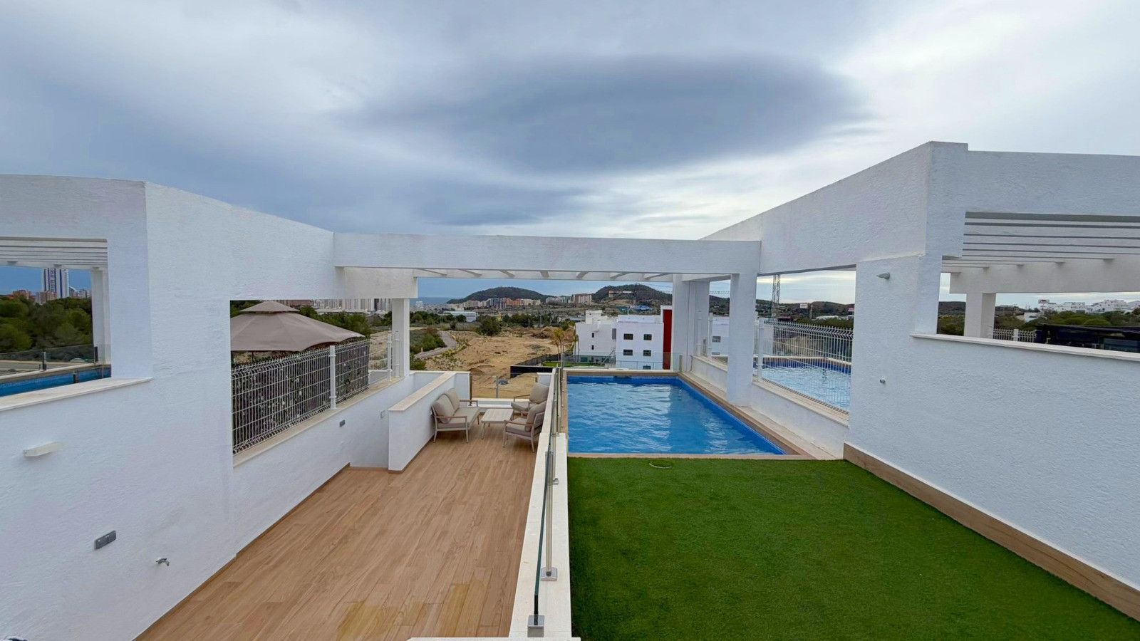 Дом вашей мечты ждет вас на побережье Коста Бланка, в развивающемся уникальном районе Терра Марина с видом на Средиземное море, которым вы можете наслаждаться из своего частного бассейна или великолепного солярия.