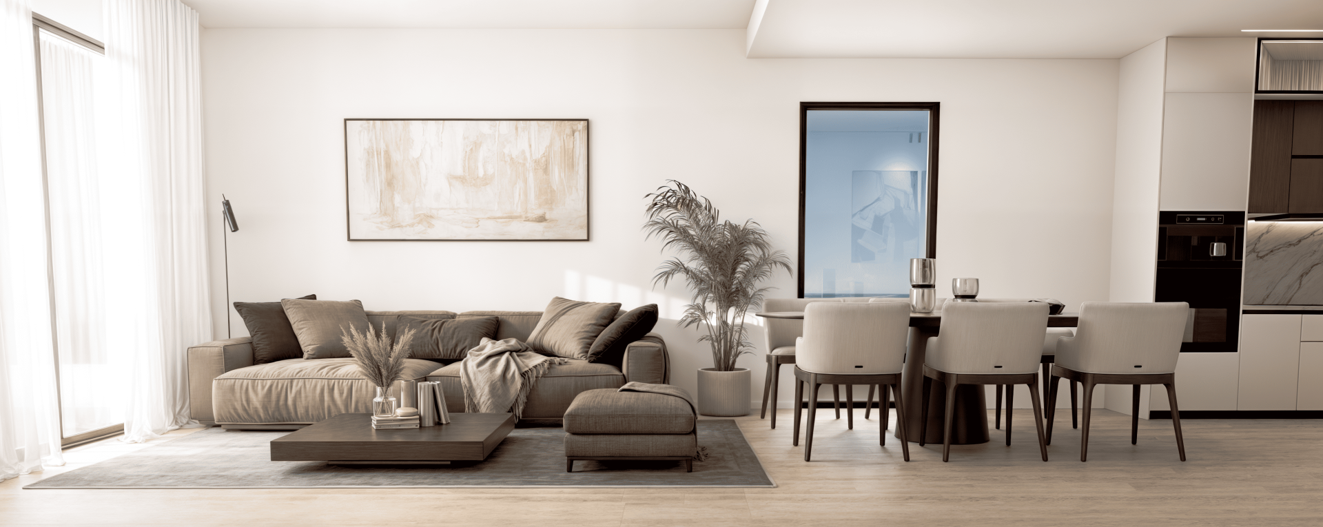 Каждая квартира отличается элегантной и высококачественной архитектурой, которая гармонично вписывается в общую эстетическую концепцию курорта. Открытая планировка кухни и гостиной создаст атмосферу уюта и света, обеспечивая связь между всеми зонами вашего нового пространства. Акцентированное внимание на разделении гостиной и спальных зон позволяет создать уединение, необходимое для спокойного отдыха.