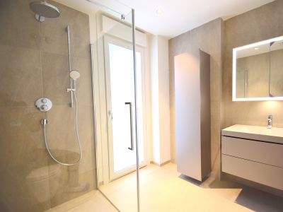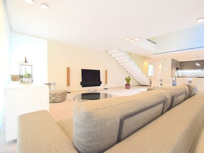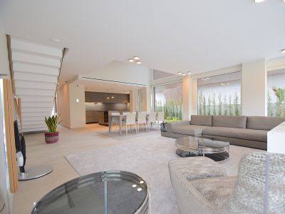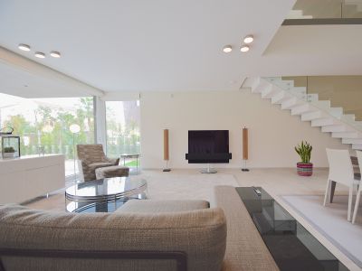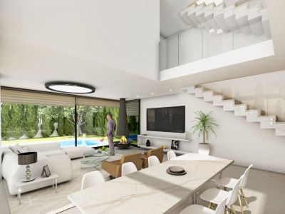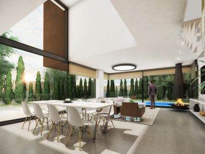 Снаружи виллы смотрятся невероятно оригинально и грациозно, при этом в оформлении нет ни малейшей помпезности; используются исключительно натуральные и высококачественные отделочные материалы, отличающиеся практичностью, долговечностью и надежностью. Была произведена детальная проработка каждого метра дома, позволившая максимально рационально организовать все внутреннее пространство. Открытое помещение с панорамными окнами, объединяющее салон и стильную кухню, позволило солнечному свету заполнять собой каждый сантиметр комнаты, делая не только светлее, но и визуально больше. Современная кухня – воплощение функциональности без ущерба эстетическому виду. Уютные спальни с умиротворяющим интерьером, способствующим хорошему отдыху и крепкому сну, вместительные встроенные шкафы (гардеробные), высококачественные и оборудованные ванные комнаты. К несомненным достоинствам следует отнести грамотно спроектированный просторный цокольный этаж, где вы можете разместить 2 спальни, гостиную, сауну, кинозал...