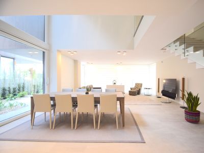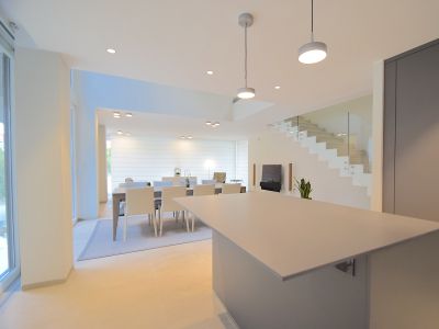 Внедрение новейших технологий, энергоэффективность и комфорт стали основой строительства полностью автоматизированных домов как внутри, так и снаружи. Каждая собственность оборудована всеми удобствами и включает: многофункциональную кухонную мебель марки Santos и бытовую технику Siemens (духовка, плита, посудомойка, холодильник), наличие стиральной и сушильной машинки, окна марки Weru, сантехника Diravit и HansGroe, солнечная батарея.
