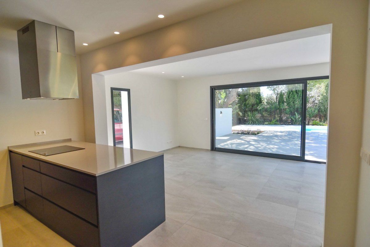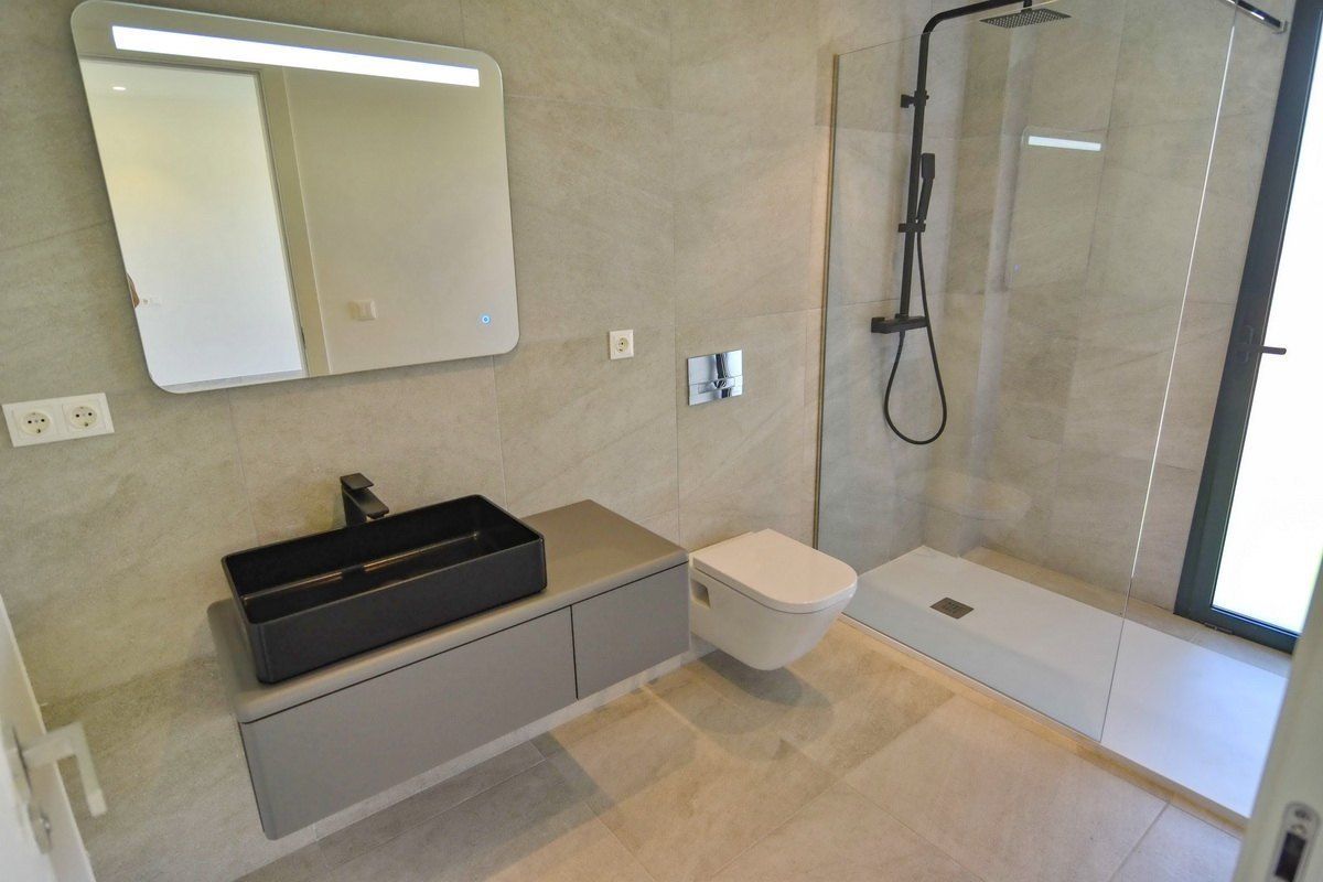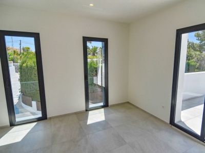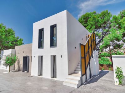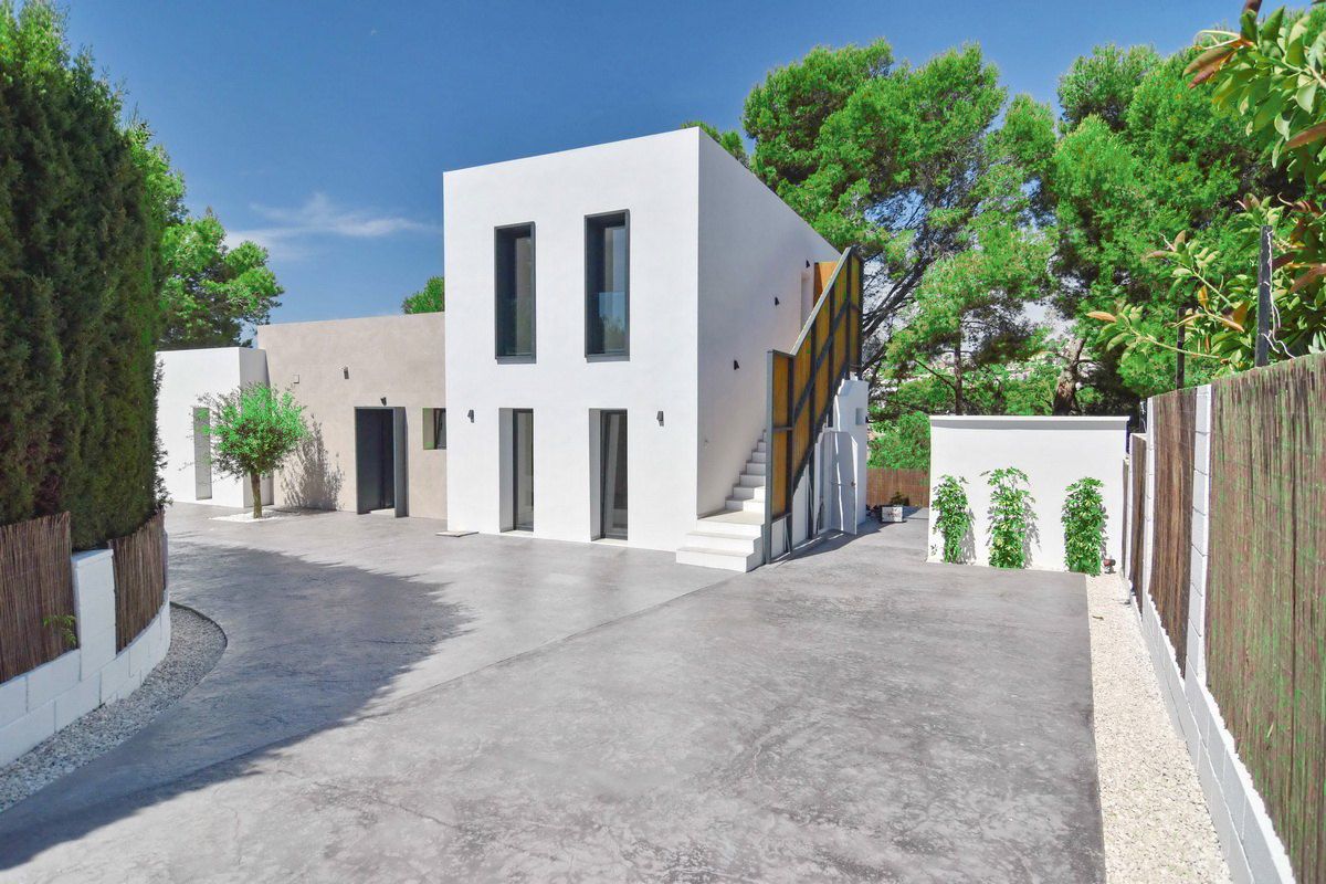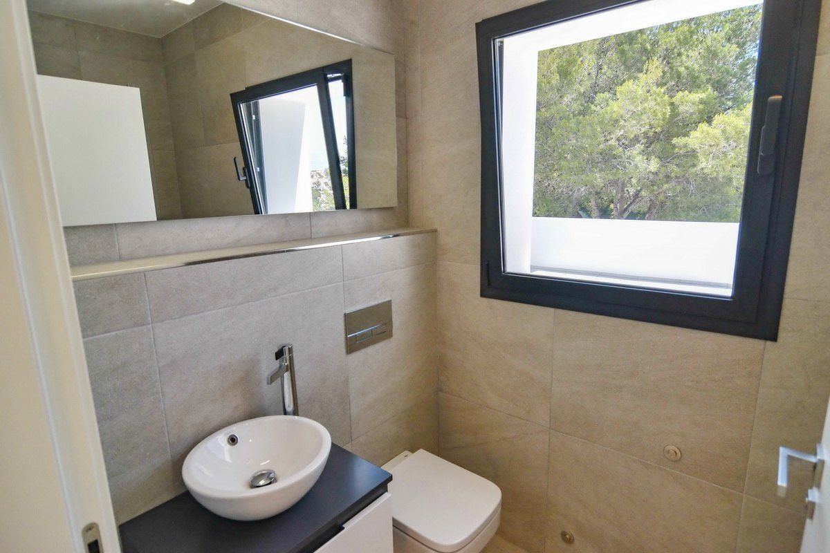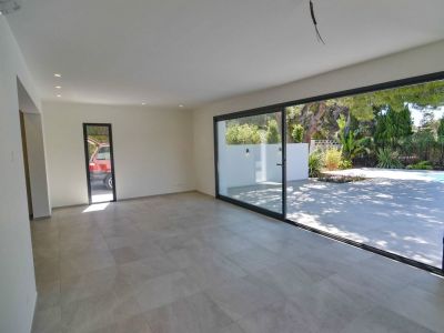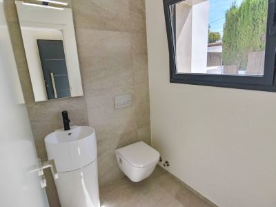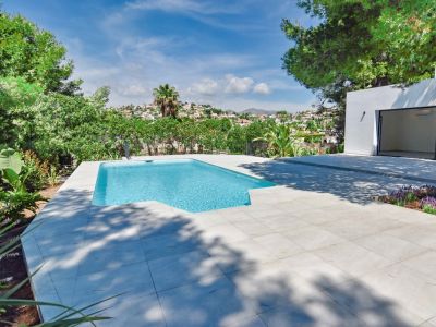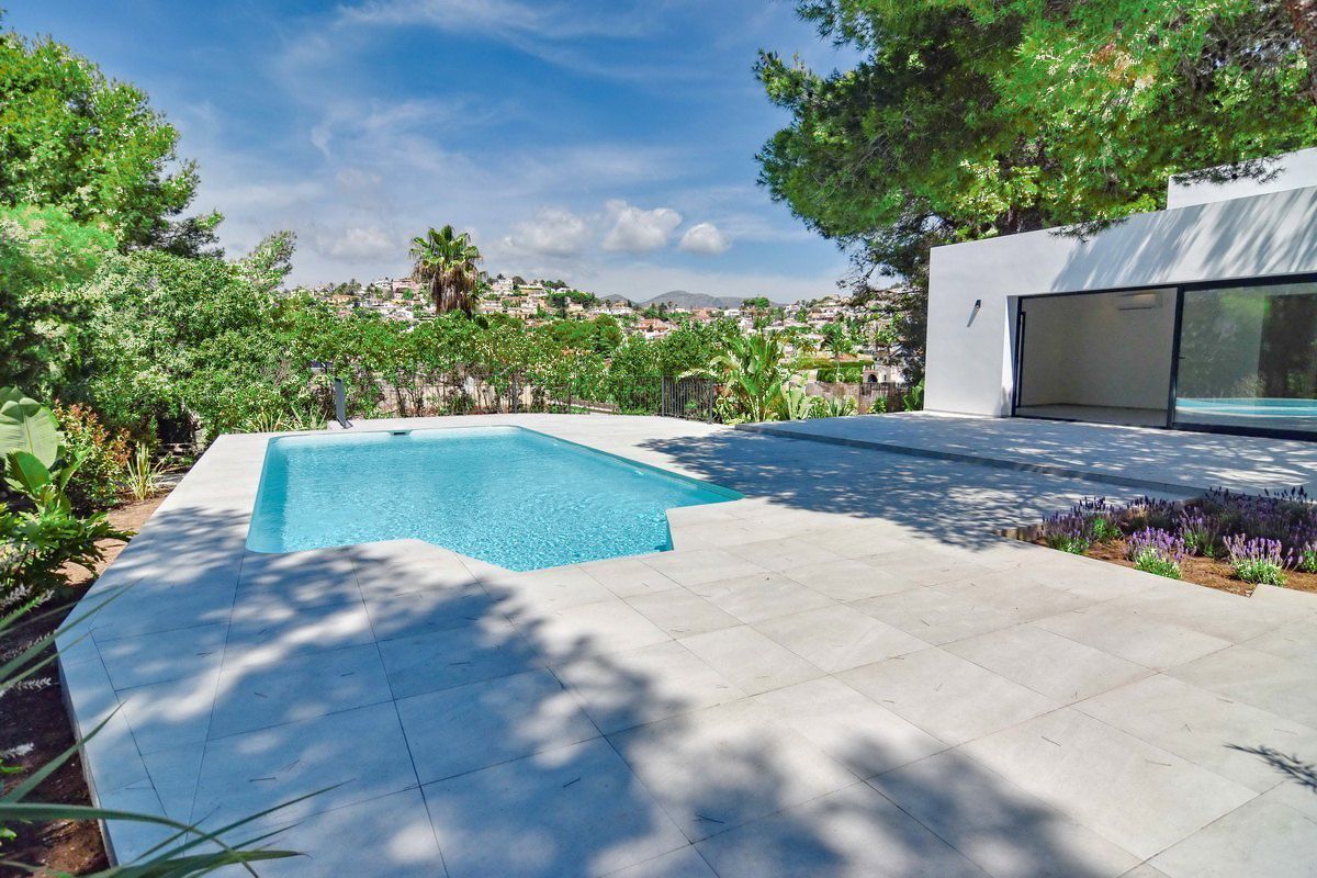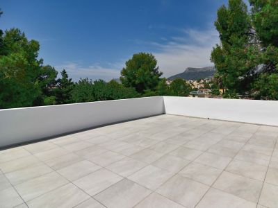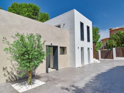 New and modern Villa with 5 bedrooms for sale in Calpe. This lovely house was completed in 2019 and built with high quality materials. On the long road we find a Parking space for several cars. With the flat we get to the first floor consisting of 3 double bedrooms, 2 bathrooms (1 EN Suite), guest toilet and large living / dining room open plan 43 m2 with Bosch appliances, giving access to a fully private pool with its terraces. On the 2nd floor with access outside we find a separate apartment with 2 bedrooms with a shared bathroom with pre-installation for a kitchen and a terrace of 48m2. The house benefits from air conditioning h / c and pre-installation for Central heating. Ready for occupancy and maintenance of the hotel in a quiet area just 4 minutes ' drive from the beach and supermarket and within 9 minutes from the town of Calpe.