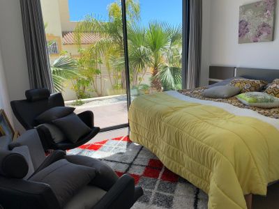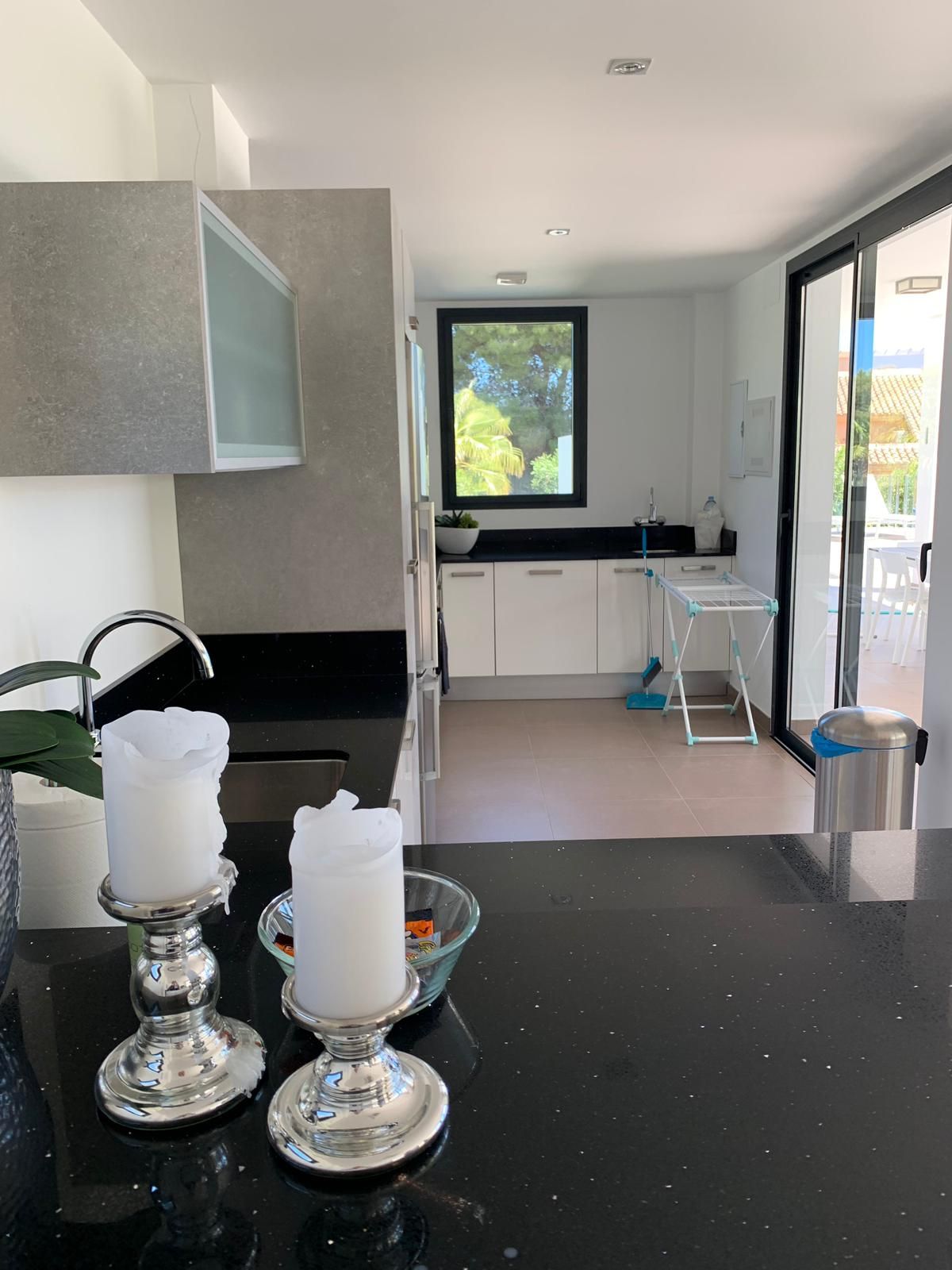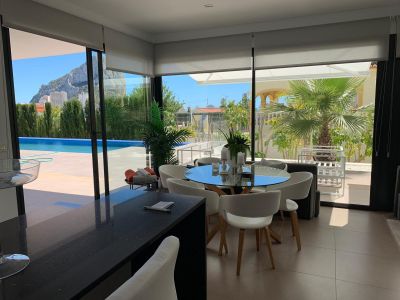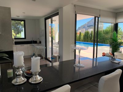 the Layout includes a fully equipped kitchen, cozy bedrooms, equipped bathrooms, large living-dining room, terraces with stunning views of the Mediterranean sea and the rock reserve of peñón de Ifach. the site is a recreation area with swimming pool area 10х4 meter and lighting, garden with amazing compositions from plants Parking space, garage.